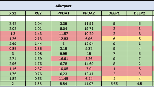 Сложно пока понять как пройдет игра после паузы, но попробуем разобрать статистику команд, благо дистанция в Бундеслиге прошла уже не маленькая. Продвинутая статистика Заранее расшифрую некоторые показатели для понимания текста: XG - ожидаемое количество голов deep - точные передачи в зону в радиусе 20 ярдов от ворот соперника XPTS - ожидаемое количество очков PPDA - интенсивность прессинга. Количество передач, выполненных соперником перед отбором или потерей XG Айнтрахт занимает 6 место в лиге по ожидаемым голам в домашних играх...