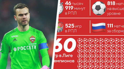 Это вообще реально превзойти? Карьера Игоря Акинфеева – что-то невероятное, в некоторые цифры просто невозможно поверить. Давайте пролистаем эту картинку до конца, а когда снова обретем дар речи, обсудим увиденное. • 20 сезонов Игорь Акинфеев практически без замен играет за ЦСКА. 30 матчей за сезон в РПЛ он провел 6 раз, 29 матчей – 5 раз, 28 матчей – 4 раза. Только три раза Акинфеев провел неполноценные сезоны – дебютный 2003-й (11 матчей) и сезон-2007, когда Игорь порвал кресты с «Ростовом». В...