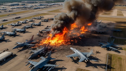 Один из боеприпасов попал в ёмкость с топливом, что спровоцировало сильное возгорание. Пожар охватил соседние здания и склады на территории базы. Обслуживающий персонал эвакуировался из-за опасности новых ударов. При этом пожарные службы Кувейта фиксируют масштабное горение нефтепродуктов, не предпринимая активных действий по тушению. Ранее стало известно о массированном ударе по объектам США в регионе...