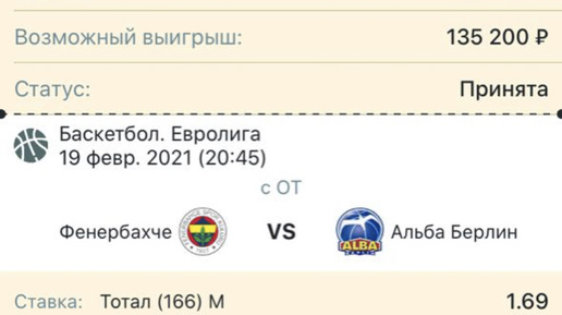 Мой прогноз на баскетбол 🏀 Фенербахче - Альба Берлин 19.02.21