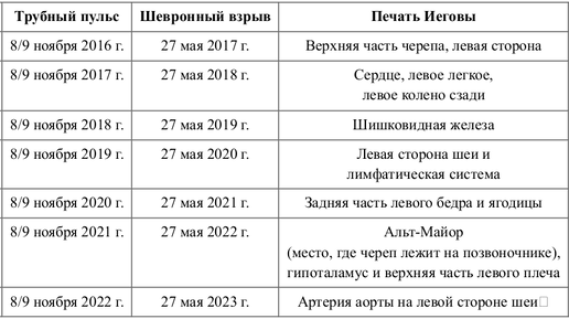 Информации мало, очень мало... В основном описание только произошедших событий, которые носят определенные названия. под которыми непонятно что понимается... Давайте попробуем разобраться, и так... 2000 г. н.э. Напомню... Сфера Аменти должна была быть установлена не позднее 01.01.1988, чтобы Сфера смогла выполнить первую 12-летнюю фазу своего цикла активации не позднее 2000 г. н.э. Как только Сфера будет полностью активирована на трехмерном уровне в ядре Земли D-2, это заставит решетку Земли послать искру частоты D-5 в Ковчег Завета, выпустив вторую печать на Ковчеге...