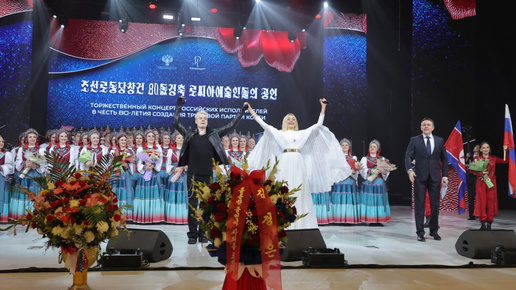 Напомню, концерт был посвящён 80-летнему юбилею основания Трудовой партии Кореи. В мероприятии от России принимали участие SHAMAN, Александра Воробьёва, театр балета Аллы Духовой "Тодес" , ансамбль Воздушно-космических сил России. Спасибо vk-сообществу SHAMANия, оперативно разместившему репортаж корейского телевидения.