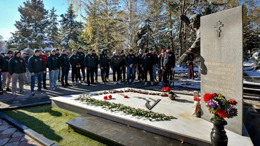 В Омске хоккеисты возложили цветы к могилам Алексея Черепанова и Евгения Хацея