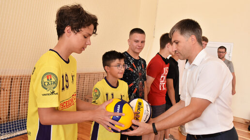 Глава города Алексей Соколов вручил новый спортинвентарь для занятий боксом, волейболом и баскетболом