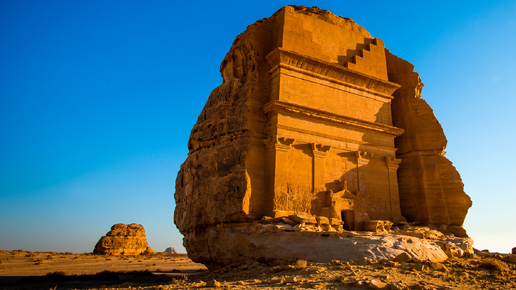Север Саудовской Аравии. Пустыня, песок, ветер. Среди безжизненных скал стоит одиночное сооружение. Фасад с колоннами, фронтон, вход. Издалека кажется, что это руины древнего дворца. Вблизи становится понятно: здание никогда не было зданием. Это монолит. Стены, колонны, портал — всё высечено из цельной скалы. Ни одного кирпича, ни одной балки. Каменный блок весом в тысячи тонн просто обтесали снаружи, оставив внутри пустоту. Это Каср аль-Фарид. Одинокий замок. Он стоит здесь почти две тысячи лет...