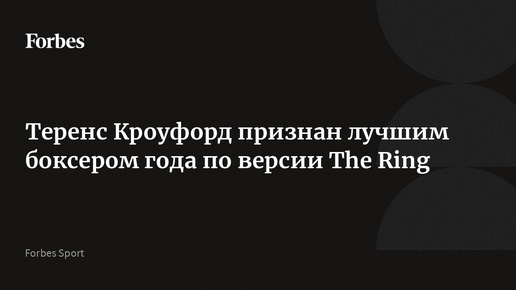 Церемония награждения прошла 30 января в Нью-Йорке. Награду Кроуфорду лично вручил чемпион мира по версиям Всемирной боксерской ассоциации (WBA), Всемирного боксерского совета (WBC) и Международной боксерской федерации (IBF) украинец Александр Усик. Помимо Кроуфорда, на звание «Боксер года» также претендовали россиянин Дмитрий Бивол, японец Наоя Иноуэ, американец Джесси Родригес и британец Фабио Уордли. Кроуфорду 38 лет. Он дебютировал на профессиональном ринге в марте 2008 года. Тогда ему противостоял его соотечественник Брайан Каммингс...