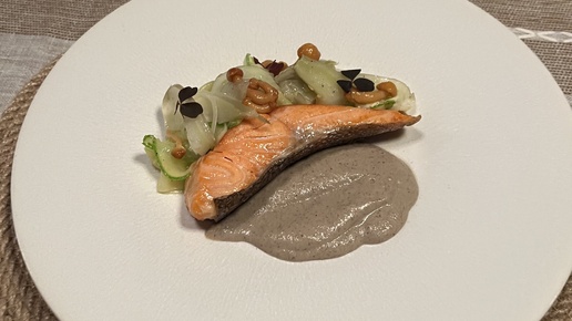 На месте винного бара «Свои 3.3», а ранее – кафе «Журфак», появилось «Свое» – новый проект с уклоном в частные фермерские истории от Андрея Даниленко и шефа-гастроботаника Андрея Колодяжного. В последний раз с его столичным творчеством я пересекался в ресторане «Л.Е.С.» на Тверском бульваре, который даже попал в список красного гида «Мишлен». Вход в новое заведение сбоку Большого Афанасьевского переулка, там зеленая стена, «лампочки Ильича», деревянная лавка, оранжевая маркиза и куча черных мешков с листьями...