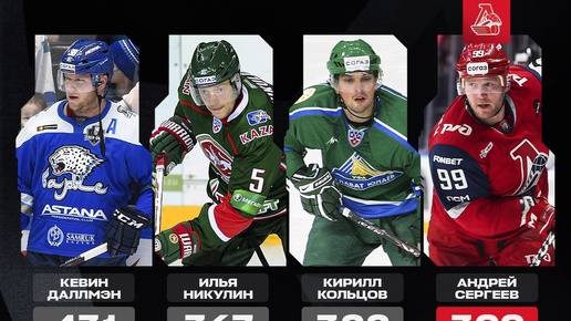 🚂 Андрей Сергеев стал четвертым защитником в истории КХЛ, набравшим 300 очков!