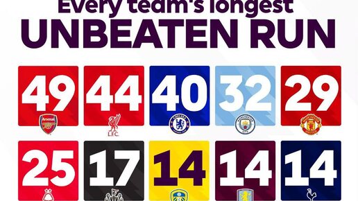 Самая длинная беспроигрышная серия команд АПЛ ‼️ @football_epl_stars