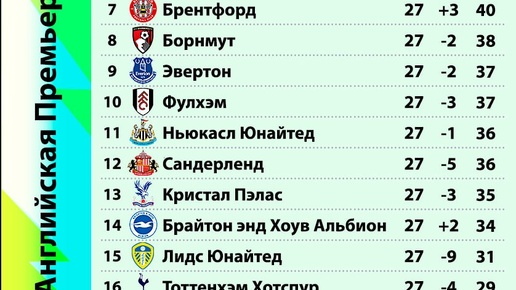 FAPL.ru — Английский футбол1 день назадПодписатьсяТурнирная таблица Премьер-Лиги по 12 последним матчам📊