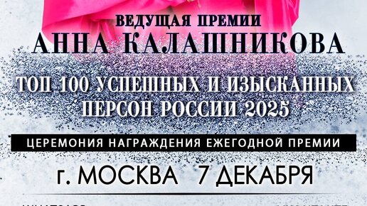 Премия «ТОП 100 УСПЕШНЫХ И ИЗЫСКАННЫХ ПЕРСОН РОССИИ» ⭐️ Ведущая Анна Калашникова 🎤
