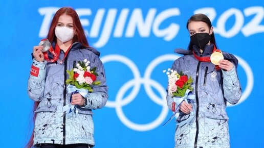 Щербакова и Трусова на подиуме: церемония награждения российских фигуристок на Олимпиаде