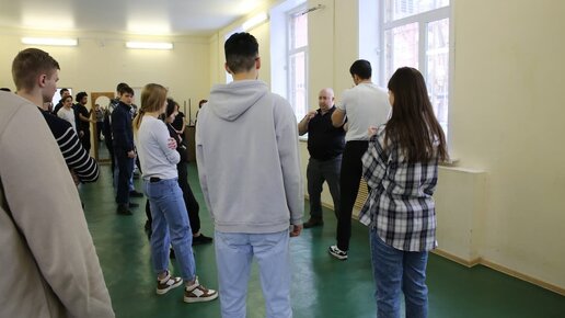 Тренировка началась с традиционной разминки. Затем студентам показали упражнения на развитие физической силы, скорости, координации...
