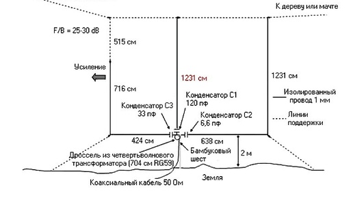 Вилочная антенна для 40 метров 🔹 Вилочная антенна, предназначенная для работы в диапазоне 40 метров, представляет собой специализированное устройство, разработанное для эффективного использования в пределах указанного диапазона. Эта антенна обеспечивает оптимальное согласование с трансивером, при его работе на частоте 7,0 МГц...