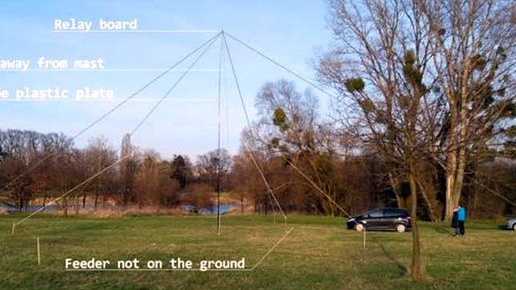 2-х элементная одномачтовая проволочная антенна с 4 переключаемыми направлениями