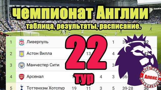 Чемпионат Англии (АПЛ). 22 тур. Результаты, расписание, таблица.