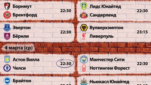 Расписание матчей 29-го тура АПЛ
