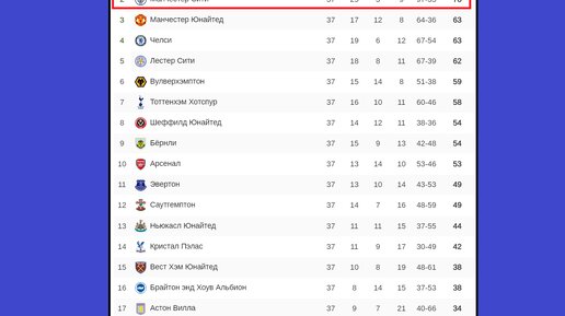 Чемпионат Англии по футболу (АПЛ). Итоги 37 тура. Результаты, расписание, таблица.