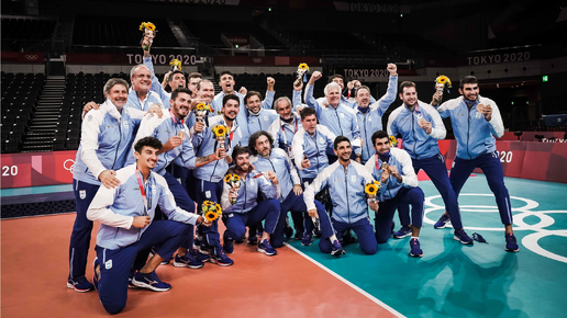 Пообещал и себе, и читателям написать отдельный рассказ о бронзовом призёре Игр в Токио, команде Аргентины. Думается, эта медаль - главная сенсация мужского волейбольного турнира, затмевающая даже ранний вылет американцев и поляков, а также сумасшедшую игру Нгапета и компании. Интересно, что аргентинцы забрались на олимпийский пьедестал всего второй раз в истории. Причём учитывались здесь и мужские соревнования, и женские; и зал, и пляжка. Успех 1988 года был повторён под копирку: снова бронза, снова в матче за 3-е место обыграны бразильцы, и снова со счётом 3:2...