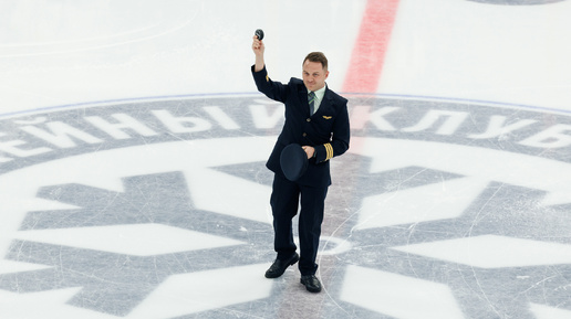 Карен Новицкий поучаствовал в матче КХЛ между «Сибирью» и «Трактором»: пилот вбросил символическую шайбу