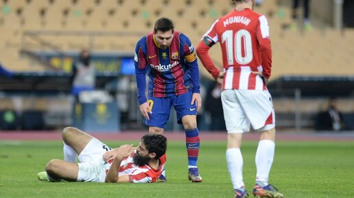 За минуту до окончания матча с поля был удалён нападающий «Барселоны» Лионель Месси. Аргентинец жёстко отмахнулся от игрока «Атлетика», и судья после просмотра системы видеоповтора показал ему красную карточку...