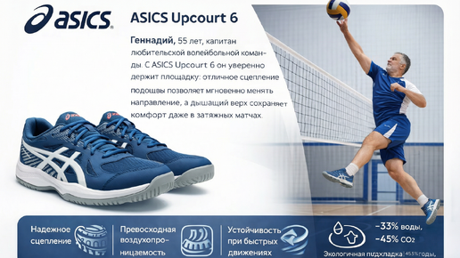 ASICS Upcourt 6: Идеальные мужские кроссовки для волейбола, бадминтона и активного образа жизни – обзор 2026