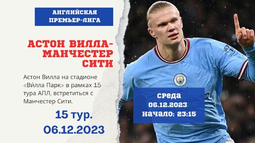 ⚽️ Чемпионат Англии 🏴 Астон Вилла – Манчестер Сити прогноз на матч 06.12.2023, Премьер-лига, АПЛ 15 тур. ⏰ Начало: 23:15