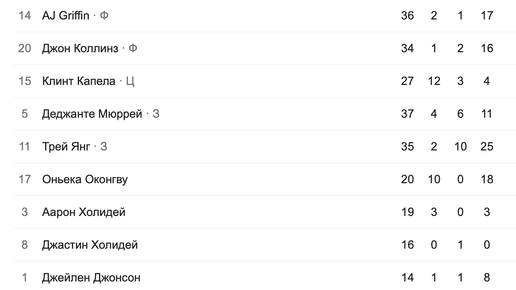Сегодня завершились матчи НБА , и обсудим самые интересные на мой взгляд Начнем с матча Кливленд Кавальерс/Атланта Хокс со счетом 114-102 - Кливленд. В этом матче у Кливленда было осуществлено достаточно успешных трехочковых (10/19) с шансом выполнения 52,6%,но у Атланты трехочковых было больше (11/35) с шансом выполнения 31,4%. Из Кливленда выделились Донован Митчелл (29 очков 9 передач и 4 подбора),Дариус Гарленд (26 очков 9 передач и 0 подборов),Джери Осман(23 очка 0 передач и 3 подбора) А вот...