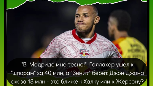 "В Мадриде мне тесно!" Галлахер ушел к "шпорам" за 40 млн, а "Зенит" берет Джон Джона аж за 18 млн - это ближе к Халку или к Жерсону?