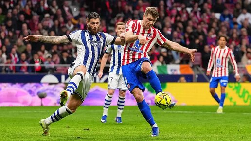 Мадридский «Атлетико» добился волевой победы над «Реал Сосьедад» в матче чемпионата Испании. На переполненном стадионе «Метрополитано» хозяева забили решающий мяч в концовке и выиграли со счётом 3:2. ⚽ Ход матча «Атлетико» быстро открыл счёт. Уже на 5-й минуте Александр Сёрлот замкнул передачу Хосе Марии Хименеса — 1:0. Гости ответили довольно быстро. На 9-й минуте Карлос Солер получил передачу Луки Сучича и точным ударом отправил мяч в девятку — 1:1. После перерыва команды обменялись голами. На 67-й минуте Николас Гонсалес вывел мадридцев вперёд после передачи Антуана Гризманна — 2:1...