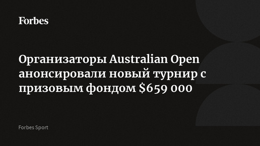 Организаторы Australian Open анонсировали новый турнир с призовым фондом $659 000