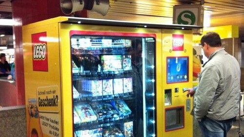Ещё одно погружение в структуру компании LEGO осуществим, переместившись в аэропорт какого-нибудь крупного города в США. Ну или в берлинское метро. В таких местах можно увидеть торговые автоматы (vending machine), необычность которых в том, что они позволяют вам купить один из имеющихся в наличии наборов LEGO. Я не могу точно сказать, принадлежат ли такие торговые точки самой компании LEGO. Хотя имеются сведения, что их установка в местах массового скопления людей в самой компании обсуждалась несколько лет назад...