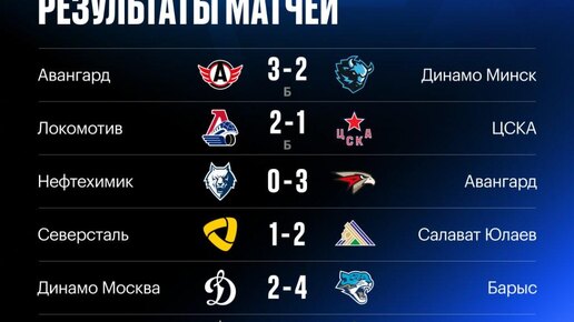 📊 «Автомобилист» и «Локомотив» победили в серии бросков, «Салават» обыграл «Северсталь», «Авангард» всухую победил «Нефтехимик», «Барыс