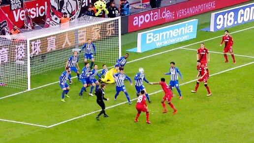 Семь секунд жаркого футбола. В сезоне Бундеслиги 2017/2018 во время матча в Леверкузене, где «Байер» принимал берлинский клуб «Герта», за 20 минут до конца встречи вратарь гостей Руне Ярстейн взял мяч в руки после паса своего игрока. Свободный удар из пределов штрафной площадки стал настоящим испытанием для гостей. Сразу четверо игроков «Байера» в течение семи секунд были просто обязаны минимум трижды поразить ворота «Герты». Не случилось. Гости в итоге победили 2:0. ВСЕ ПОДРОБНОСТИ И ПОВТОРЫ - В РОЛИКЕ: Seven seconds of fire...