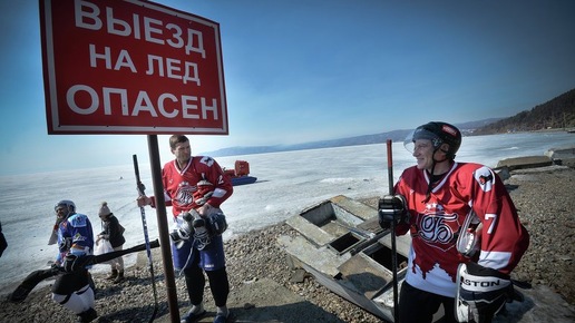Хоккейный матч на стадионе в 32.000 тысячи квадратных метров на озере Байкал.