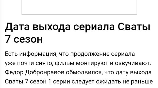 Хочу затронуть такую тему как: будет ли сваты 7? Ведь все же знают,что сваты 7 давно снимают но из ряд причин съемки застывали и вот ряд причин: