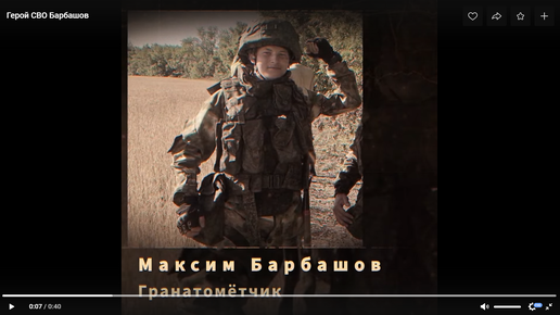 НАШ ГЕРОЙ РОССИИ ГРАНАТОМЁТЧИК МАКСИМ БАРБАШОВ