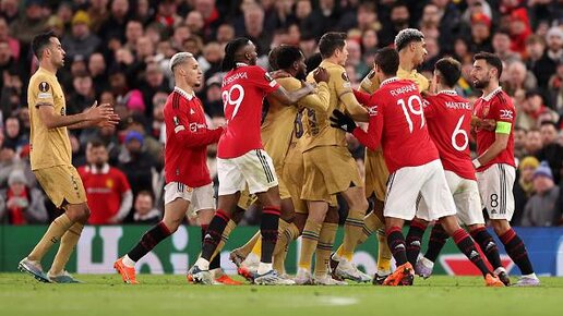 «Манчестер Юнайтед» обыграл «Барселону» со счетом 2:1 в домашнем матче 1/16 финала Лиги Европы и вышел в следующий раунд. Счет во встрече открыл Роберт Левандовски на 18-й минуте, форвард «Барселоны» реализовал пенальти. На 47-й минуте бразильский полузащитник «Юнайтед» Фред сравнял счет, а его соотечественник Антони, вышедший на замену, дальним ударом на 73-й минуте принес хозяевам победу. Первая встреча прошла в «Барселоне» и завершилась со счетом 2:2. Лучшие моменты ответного матча «Манчестер...