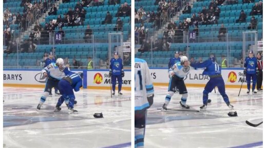Матч ХК «Сибирь» с «Барысом» начался с драки