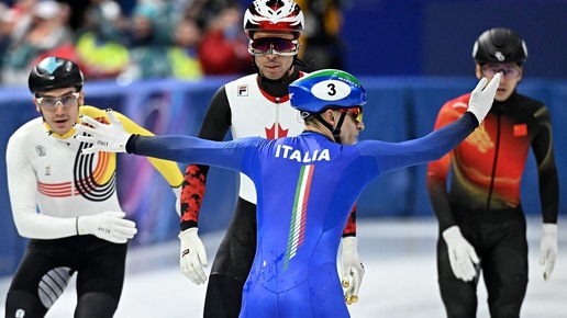 4. США — 2.57,160 Представители сборной Италии выиграли смешанную эстафету по шорт-треку на Олимпиаде-2026. Хозяева Игр лидировали с уверенным отрывом и позволили себе красиво завершить финальный забег: Пьетро Сигель финишировал спиной вперед...