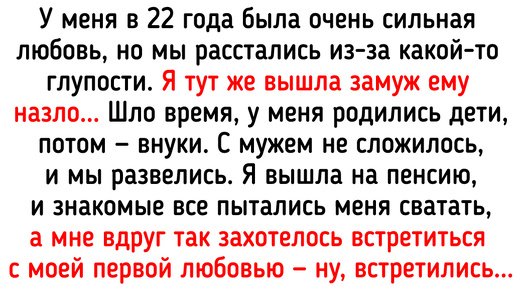 Встречи с первой любовью охватывают весь спектр эмоций — от трепета до светлой грусти. Сегодня вы узнаете, как детсадовское обещание пожениться исполнилось через 20 лет, почему случайная картина в кафе может стать порталом в прошлое и каково это — встретить возлюбленную юности, доставляя ей заказ. В старших классах в аське познакомилась с парнем. Стали встречаться «по интернету», но так и не увиделись. Недавно меня отправили в командировку в его город. Была не была! Подняла все переписки и откопала его адрес...