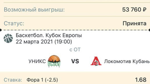 Ловите первый ординар на сегодня🙌 Еврокубок, ответный матч между Локомотивом и Униксом в Краснодаре. В первом матче Уникс одержал уверенную победу, хоть Локо и цеплялся за счёт на протяжении всего матча...