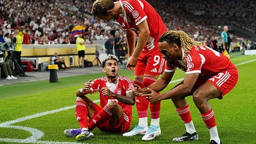 Суперкубок Германии. 16 августа. Штутгарт. Стадион "МХП-Арена". Судья - Харм Осмерс (Ганновер). Штутгарт - Бавария - 1:2 (0:1). Голы: Кейн, 18 (0:1). Диас, 77 (0:2). Левелинг, 90+3 (1:2). Статистика матча. Он-лайн трансляция. Новый сезон в Германии традиционно открыл матч за Суперкубок. "Штутгарт" в родных стенах рассчитывал порадовать своих болельщиков, но "Бавария" не дала состояться этому празднику. Команда Венсана Компани начала поединок с места в карьер и создала россыпь голевых моментов. Однако...