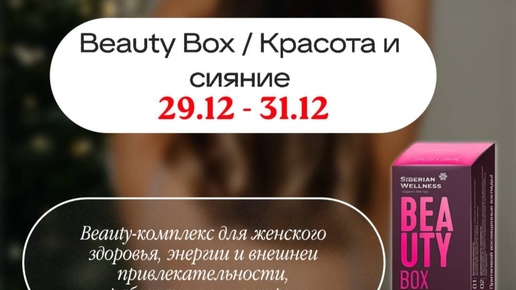Красота и энергия за 5 секунд в день Beauty Box - это комплекс для женского здоровья, красоты и энергии, который поддерживает кожу, волосы и ногти изнутри, помогая выглядеть свежо и ухоженно каждый день. Красивая кожа и сияние Коэнзим Q10 стимулирует выработку клеточной энергии, повышает упругость кожи и замедляет процессы старения. Сильные волосы и ногти Витамины группы B, фолиевая кислота и таурин способствуют росту крепких волос и укреплению ногтей...