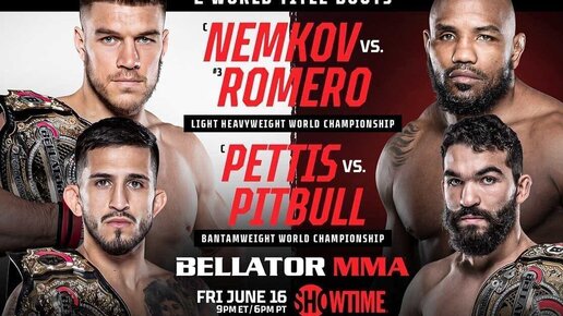В ночь на 17 июня в Чикаго (США) на «Уинтраст-Арена» состоится турнир Bellator 297. Главным событием станет титульный бой Вадима Немкова и Йоэля Ромеро. Россиянин будет защищать чемпионат носки пояс полутяжелого веса. Где и во сколько смотреть Bellator 297? Турнир начнется в 01:00 по московскому времени. На территории России официальной трансляции не будет. Бои основного карда. Вадим...