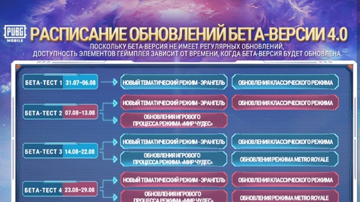 Подтверждено, что бета-версия 4.0  выйдет 31 июля. На изображении — календарь обновлений бета-версии… Ждете !? Мой ларёк UC | Канал с призовыми кастомками | Стримы тут | Розыгрыш Super Car Transform