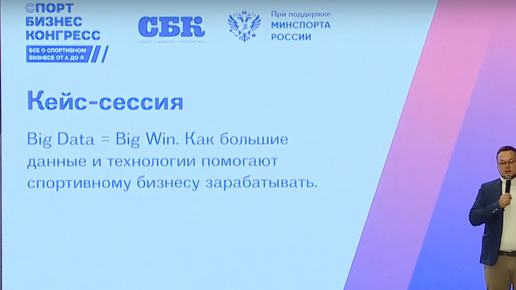 Кадр из трансляции "Спорт Бизнес Конгресс" На «Спорт Бизнес Конгрессе» прошла кейс-сессия «Big Data = Big Win. Как большие данные и технологии помогают спортивному бизнесу зарабатывать». Модератор — Иван Катанаев, программный директор акселератора спортивных инноваций Технопарка «Сколково». В дискуссии участвовали представители крупнейших игроков спортивной и технологической индустрии — Футбольной Национальной Лиги (ФНЛ), Яндекса, хоккейного клуба «Авангард», продакшена спортивного контента VSporte и платформы аналитики соцмедиа Brand Analytics...