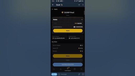 Прямо сейчас на платформе telegram стартует новый проект - DUCK. Чем он интересен? В зависимости от давности вашей регистрации в мессенджере, вам начисляют внутриигровую валюту $DUCK. Сама она не имеет особой ценности, однако прямо сейчас ее можно отправить в стейкинг. Поторопитесь, у вас только неделя. За это время вы можете заработать токены $DUMP, вдохновленные интересом президента Трампа к криптовалюте. Сейчас они торгуются за ничтожно малую цену, однако отсылка к Дональду Трампу намекает на возможный космический рост...