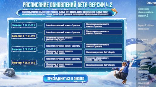 Расписание обновлений бета-версии 4.2 🔫 - бетка обновления 4.2 начнет выходить уже 4 декабря, но возможны изменения в графике Ждете? 😎 💓Бот 24/7 - @prostibrouc_bot ✅Магазин UC -https://t.me/ProstiBro_uc...