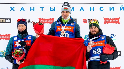 Антон Смольский из Белоруссии вышел на первое место в спринтерской гонке с результатом 26 минут 55 секунд. Александр Поварницын из Тюменской области, занявший второе место, в жаркой борьбе уступил лидеру всего 2,8 секунды. Оба спортсмена пришли к финишу без промахов на огневых рубежах. Антон Смольский после финиша рассказал, что мороз при гонке ощущался. Он также сообщил, что на стрельбе у него не было порывов и ход был хороший: «Мне удалось чисто пройти рубежи. Лыжи шли хорошо», — поделился сразу после финиша спортсмен...